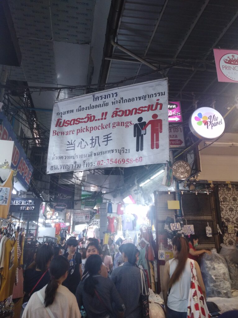 スリに注意の看板ですが、中国語が有るけど日本語が無い。