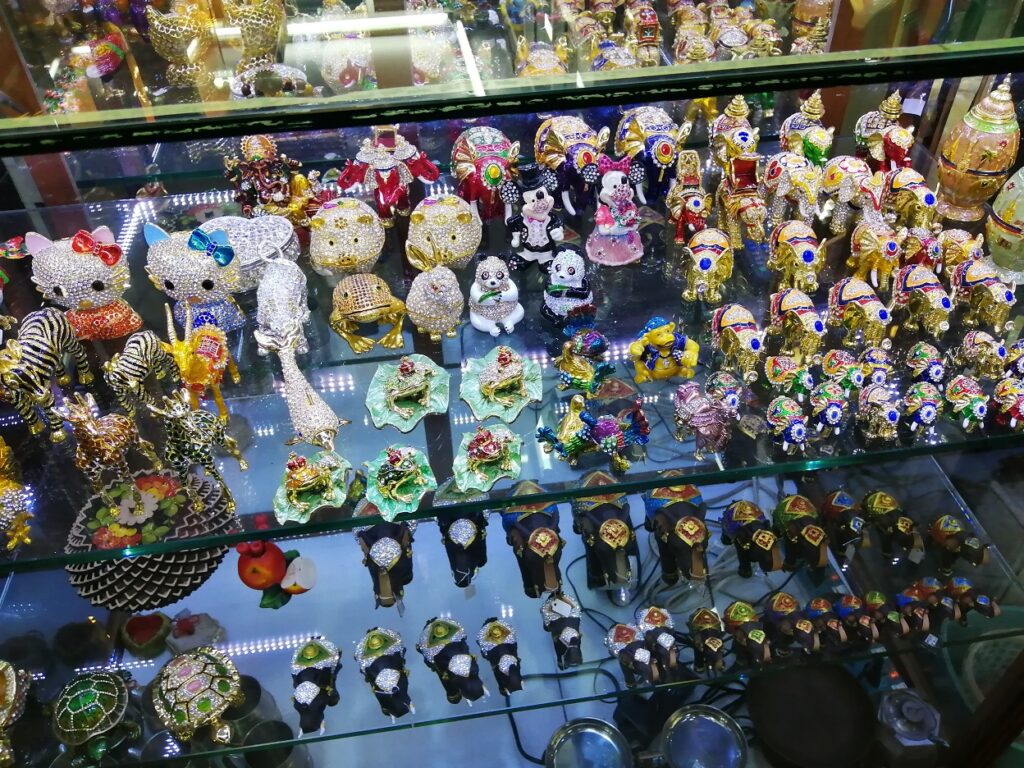 仏像や、神像を売っているお店もありますが、タイでは仏像や神像と言った物は、崇拝の対象な為、基本的に国外へ持ち出せません。