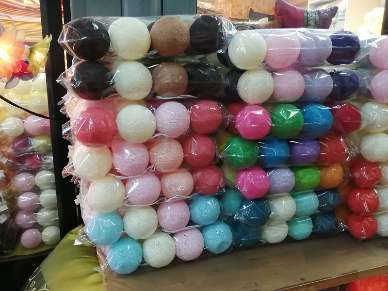 バックやランタン、コットンボールのお店があります。