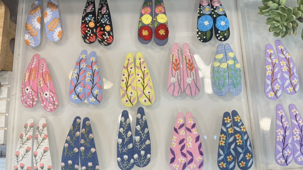 この度、 刺繡のヘアクリップを紹介したいと思います。ハンドメイドの商品です。