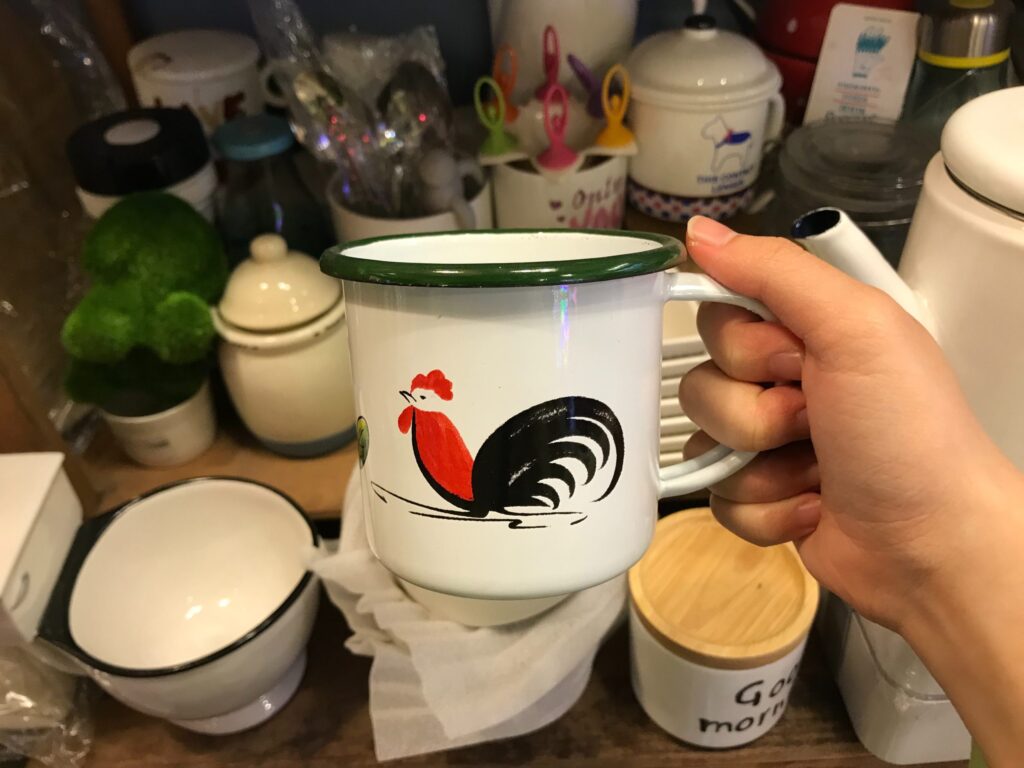 バンコク仕入れ市場「チャトゥチャック・ウィークエンド・マーケット」ニワトリ柄カップ